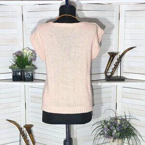 Vintage 80s 90s Knitted Cotton Top Diamond Pattern Pink Blouse - M