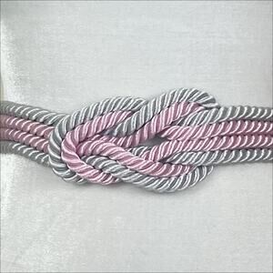 Vintage 80s 90s Knotted Rope Belt With Ribbon Tie Back Pink Gray