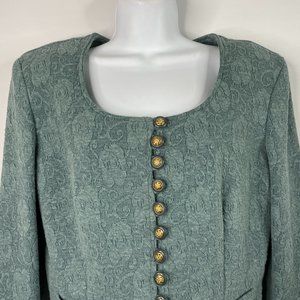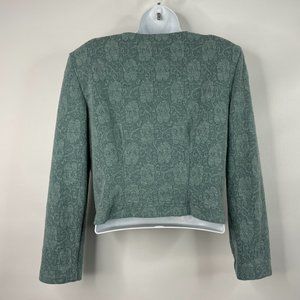 Vintage 80s 90s La Belle Cropped Jacket Size 7 Juniors Sage Green Baroque Floral
