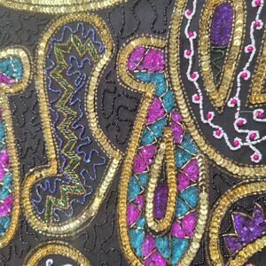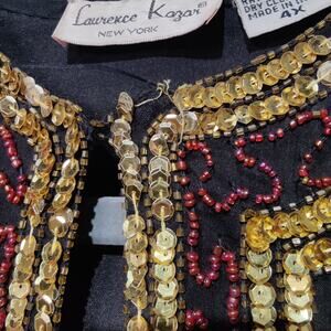Vintage Laurence Kazar black jacket with all over sequins and beads in paisely pattern. Gold sequins with multicolor beading. Super intricate and very heavy.