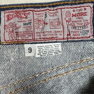 Keywords: Levis Jeans, Vintage Levis, Womens Jeans, High Rise Jeans, Button Fly Jeans, Raw Hem Jeans, Dark Wash Jeans, Straight Leg Jeans, Vintage Denim, Womens Denim, Size 9 Jeans, Retro Jeans