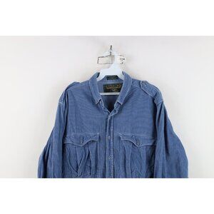 Vintage 80s 90s Levis Mens Large Distressed Corduroy Military Bush Button Shirt