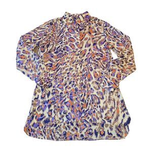Vintage 80s 90s Mishca Tunic Button up Longsleeve Blouse Abstract Animal Print S