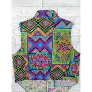 Vintage 80s 90s Miss Kitty Southwestern Aztec Print Tie Up Vest Top Western Sz M
