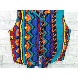 Vintage 80s 90s Miss Kitty Southwestern Aztec Print Tie-able Vest Top Western M