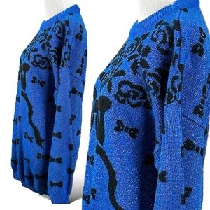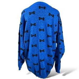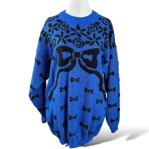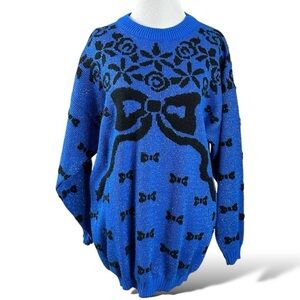 Vintage 80s 90s Oversized Coquette Shimmer Bow Sweater Blue Metallic Size Medium