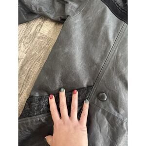 This jacket is the embodiment of the 80s look. It is comprised of genuine leather and suede in a paisley fabric. It almost has a southwest vibe to it. There is no size tag in it but it can fit from a medium to a large (maybe even an xl). I am a size medium and it fits me like an oversized jacket. So cute. Please refer closely to pictures as they contain the measurements. Condition is excellent . The only issue I can see are some faint white marks on one side of the jacket (which I have pictured). It’s very minimal but I like to mention everything. Also it has a removable liner on the inside. Please feel free to reach out to me with any questions.