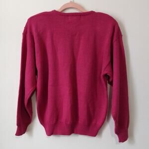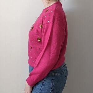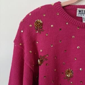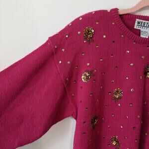Vintage 80s 90s Pink Gold Sequins Sequined Floral Crewneck Funky Sweater 1980s L