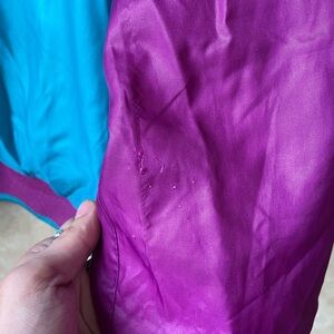 Stylish vintage Puma pull over windbreaker jacket in vibrant purple and teal. Features classic logo detail, front zipper pocket, and its lined. In fair vintage condition with plenty of life left. On small scuff on the arm- see photos for best description.