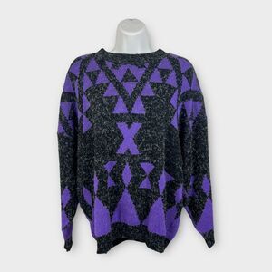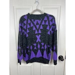 Vintage 80s 90s Purple and black geometric print acrylic sweater size L/XL