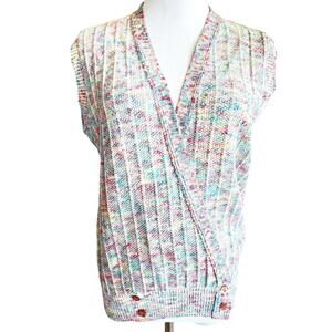 Vintage 80s 90s Rainbow Confetti Sweater Vest Sleeveless Cardigan Small S Y2K