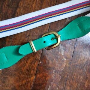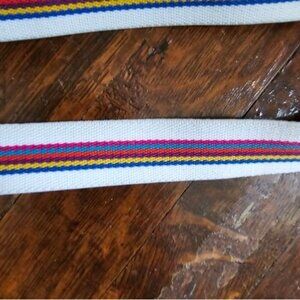 Vintage 80s 90s Rainbow Striped Canvas Leather Belt