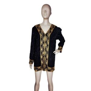 Vintage 80s 90s Royal Feelings 100% Silk Gold Beaded Sequined Jacket Size L/XL