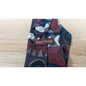 Vintage 80s 90s Royal Knight Abstract Geometric Tie Maroon Blue Gray Polyester
