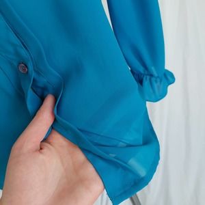 Vintage 80s 90s Ruffle Mock Neck Semi-Sheer Button-Up Blouse
