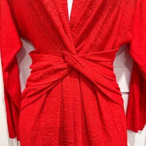 Vintage 80's 90's Sexy Low Cut Red Vamp Curvy Crinkle Dress Valentine Romantic
