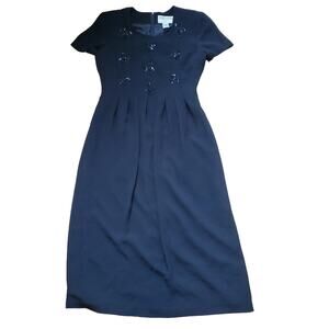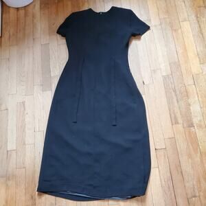 Vintage 80s 90s Short Sleeve A Line Midi Dress Black Bow Gothic Twee Whimsygoth