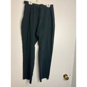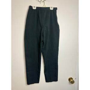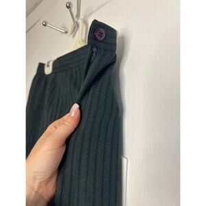 This product is a pair of vintage 80s 90s Stringbean high waisted striped trousers in a size 7 (what is listed as a size 5, but fits like a size 7). Made of polyester in a green striped color, these retro pants are perfect for adding a touch of old school style to any outfit. Designed in the USA, these trousers offer a unique and distinctive look that is sure to stand out in any wardrobe.