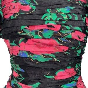 Vintage 80’s 90’s Tadashi Floral Off The Shoulders Pleated Ruffle Party Dress 4