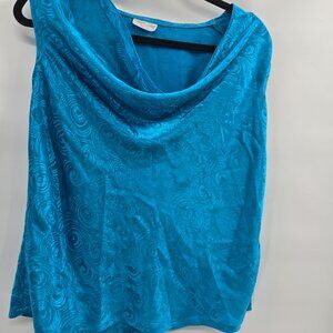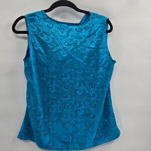Vintage 80s 90s TanJay Electric Blue Embossed Swirls Sleeveless Cowl Top