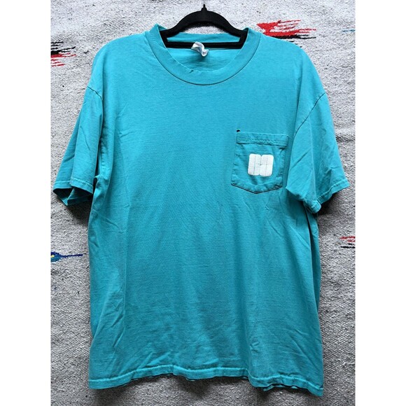 Vintage 80s 90s Teal green super soft Pocket t shirt Hanes Beefy Large
