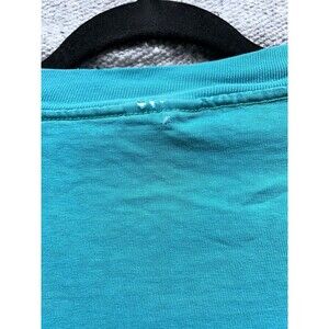 Vintage 80s 90s Teal green super soft t shirt Hanes Beefy Large Super thin and frayed Made in usa Measurements in photos