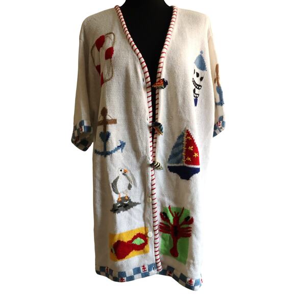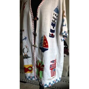 Vintage 80s 90s The Quacker Factory Cardigan Nautical Sailboat Lighthouse 1X