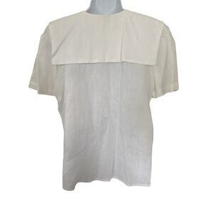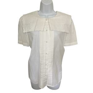 Vintage 80s 90s White Cotton Pan Collar Cottage Preppy Victorian Blouse M/8