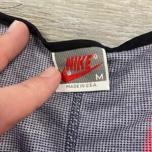 Pre-owned condition. Please note that the item has some stains on the front red black gray colorway striped panel detail swoosh and spellout logo hits chest colorful activewear gym gymwear athletic sweats running jogging sporty muscle tee.