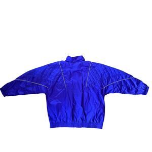 Step back into the 80s and 90s with this bold and vibrant Vintage Bold Spirit windbreaker jacket in size XL. Featuring a striking royal purple color, embroidered gold detailing, and retro geometric piping, this jacket captures the essence of vintage streetwear style.