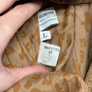 Vintage 80s 90s Winlit Brown Womens L Suede Leather Trench Coat Jacket Cheetah Print Lining Heavyweight Grunge Earth Tones Long Jacket
