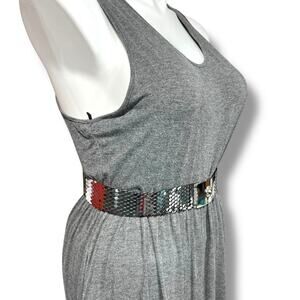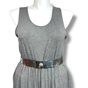 Silver Tone Flower Buckle Accent Wide Scale Stretch Belt Vintage 80s 90s