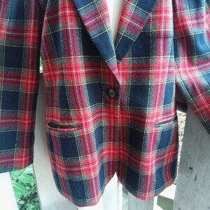 Vintage 80s 90s Wool Plaid Tartan Preppy Academia Oversized Blazer Women Sz 16