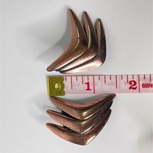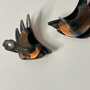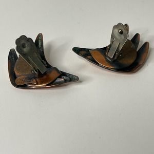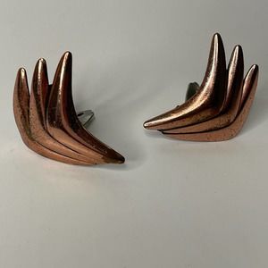 Vintage 80s 90s Y2K Distressed Copper Metal Fishbone Clip On Earrings Geometric