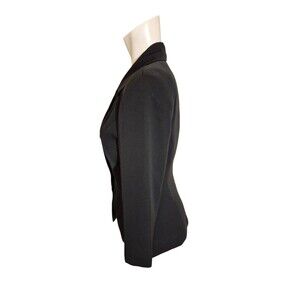 Vintage 80s 90s Y2K Womens Blazer Crepe Classic Blazer Minimalist Black Sz 4