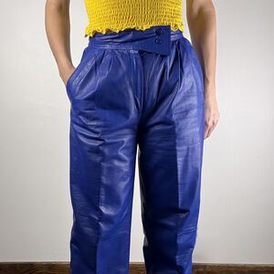 Vintage 80s 90s Yessica C&A Cobalt Blue High Waisted Pleated Leather Pants