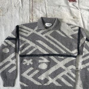 Vintage 80s 90s Yves Saint Laurent Handknit Collared Chunky Pullover Sweater
