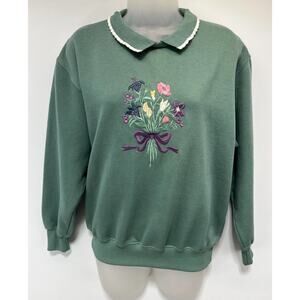 Vintage 80’s ACTIVE EXCHANGE Floral Embroidered Sweatshirt Green Sz S