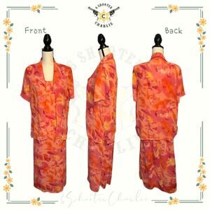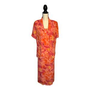 Vintage 80's ADOLFO COLLECTIONS Dress w/ Matching Jacket Pink Floral Size Medium
