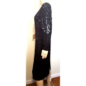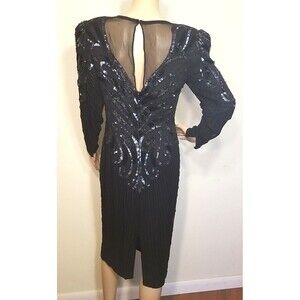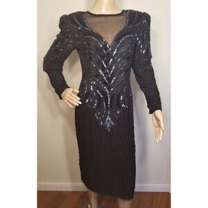 Vintage 80s A.J. Bari Beaded Sequins Silk Dress Size 8 Beautiful