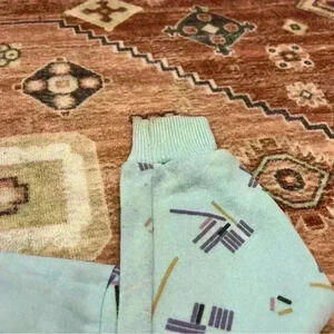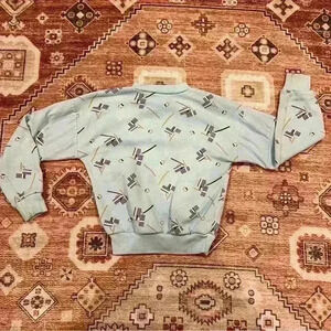Vintage 80s Abstract Geometric Print Henley Sweatshirt. Baby blue with abstract designs. Best fits a size 4.
