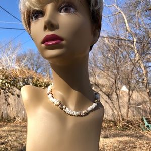 Abstract shell necklace choker in shades of tan and off white