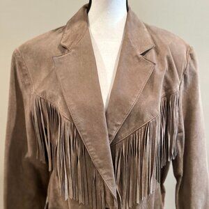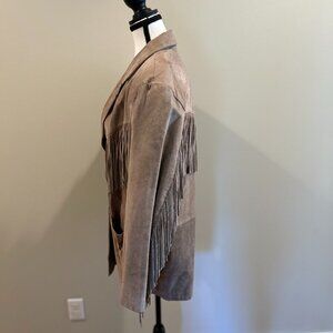 Step back in time with this amazing 80s vintage suede leather fringe jacket!