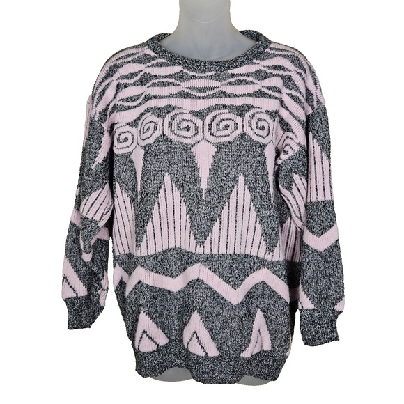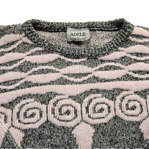 Vintage 80s Adele Knitwear Sweater Made in USA Chunky Geometric Womens M Retro