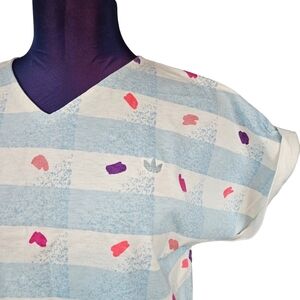 In excellent condition Vintage 80s Adidas Blue & White Checkered Trefoil Tee-Shirt Size Large Women's.