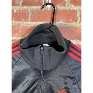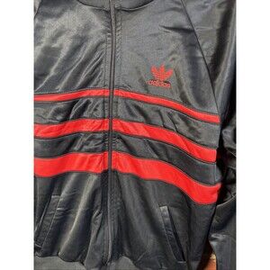 Vintage 80s Adidas Track Suit Jacket USA Made Full Zip Black/Red Hiphop Sz Large