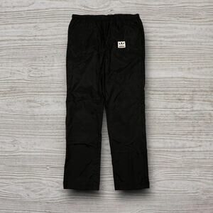 Crafted from 100% nylon and made in Singapore, these pants feature a sleek all-black design that provides a versatile and timeless look. The standout detail is the small, rainbow Trefoil logo patch, subtly adding a pop of color and a nod to the era’s vibrant aesthetic. The wide-leg cut enhances comfort and mobility, making these pants not just a fashion statement but also practical for various activities. m 👖✨