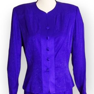 Vintage 80s Adrianna Papell Royal Blue 100% Silk 2 Piece Suit Jacket & Skirt 8