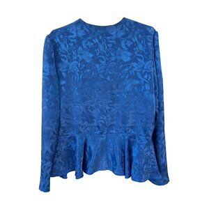 Vintage 80s Alexis Fashion Peplum Top Size 16 Button Long Sleeve Floral Jacquard
