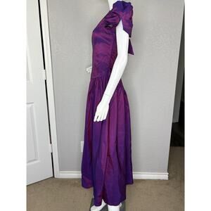 Vintage 80s Alfred Angelo Midi Dress Puff Slv Iridescent Purple Taffeta Prom S